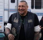 Frankie Loyal is an American actor who plays the role of Hank Loza on Mayans MC, a spinoff of the FX original series Sons of Anarchy. Playing the role of the El Pacificador of the Mayans Motorcycle Club, Santo Padre charter, Frankie makes his debut on the season one premiere episode "Perro/Oc". Playing a major recurring role throughout the same and subsequent seasons, Frankie was last seen in the season five finale, "Slow to Bleed Fair Son".