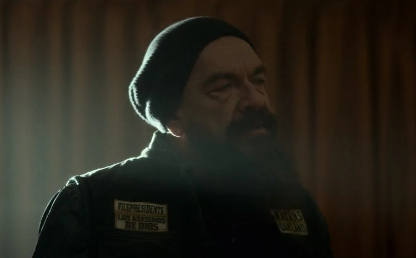 Diaz and his charter arrive at a motel in Stockton where they find the Santo Padre Mayans. Diaz asks them to leave but Obispo "Bishop" Losa, their President, refuses. The charters move inside to talk. Diaz is aware that Bishop wants to kill the other two Mayan Kings, Oscar "El Oso" Ramos and Canche. Diaz tells Bishop that Ramos reached out to him for his support against Santo Padre. Diaz recalls his first impressions of Bishop, whom Alvarez would bring around the club when Bishop was still young. Diaz notes that Bishop has always been in Alvarez's shadow and has done whatever Alvarez asked of him, including leaving his charter to found Santo Padre and turning the MC "in to Walmart" in the process of aligning more closely with Galindo. Bishop agrees that the club is becoming a corporation, only caring about money. Bishop asks Diaz to join him against the other Kings so the club can return to what it was - "motherfucking outlaws," as Diaz once knew it. Diaz seems to agree and shakes hands with Bishop. He says they will ride out once they have found Ramos.