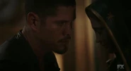 Angel and the rogue Mayan are having a cage fight that Angel wins. As soon as it’s over, the two hug it out and everything is cool.